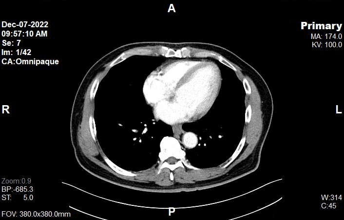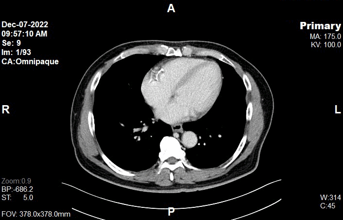 - Position the transverse laser light beam at the level of mid of sternum to start the topogram.