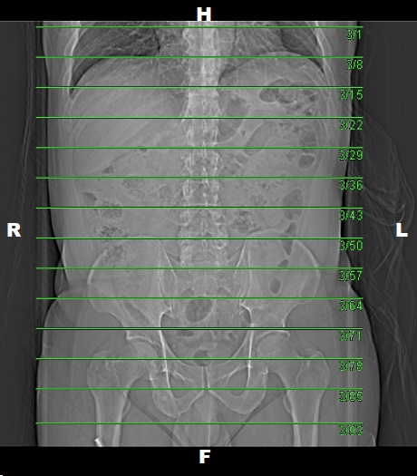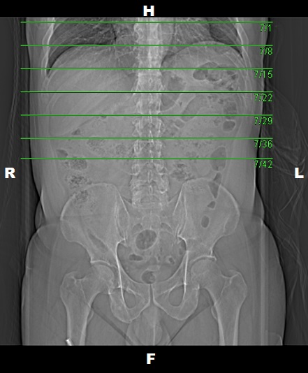 - Stop the topogram scanning when the scanning reach / pass over the inferior ischial ramus.
