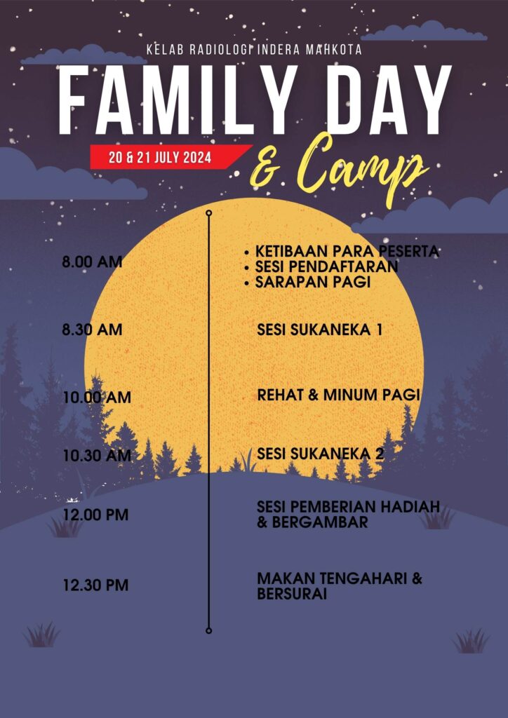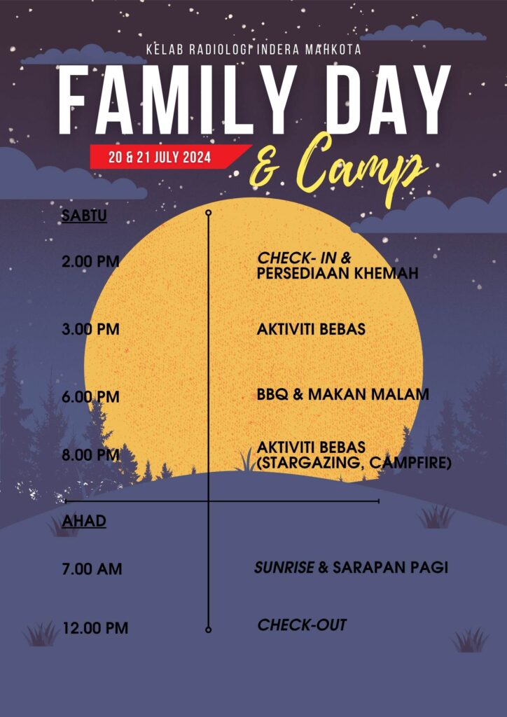 Program Hari Keluarga adalah WAJIB bagi semua staff yang tidak bekerja shift pada tarikh tersebut, manakala aktiviti berkhemah adalah terbuka kepada mereka yang berminat.