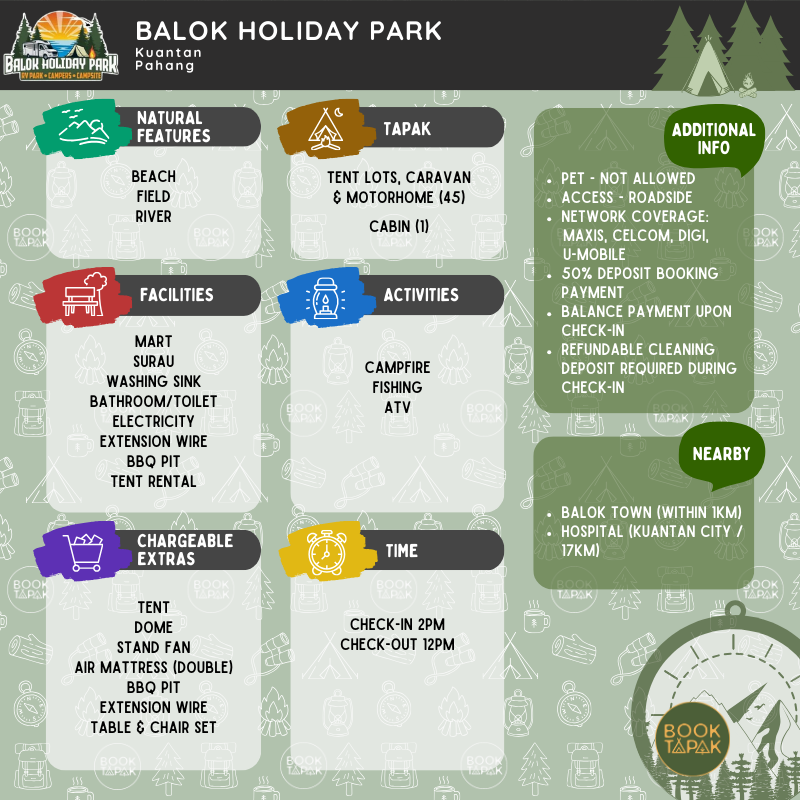 Bagi aktiviti perkhemahan, terdapat 2 kategori mod berkhemah yang ada iaitu mod berkhemah dengan peralatan khemah sendiri dan juga ‘glamping’. Anda boleh memilih mod berkhemah yang disukai tetapi ingin kami diingatkan bahawa mod ‘glamping’ adalah terhad kepada kesediaan bilangan khemah yang dibekalkan oleh pihak tapak perkhemahan dan bersifat ‘siapa cepat dia dapat’.
